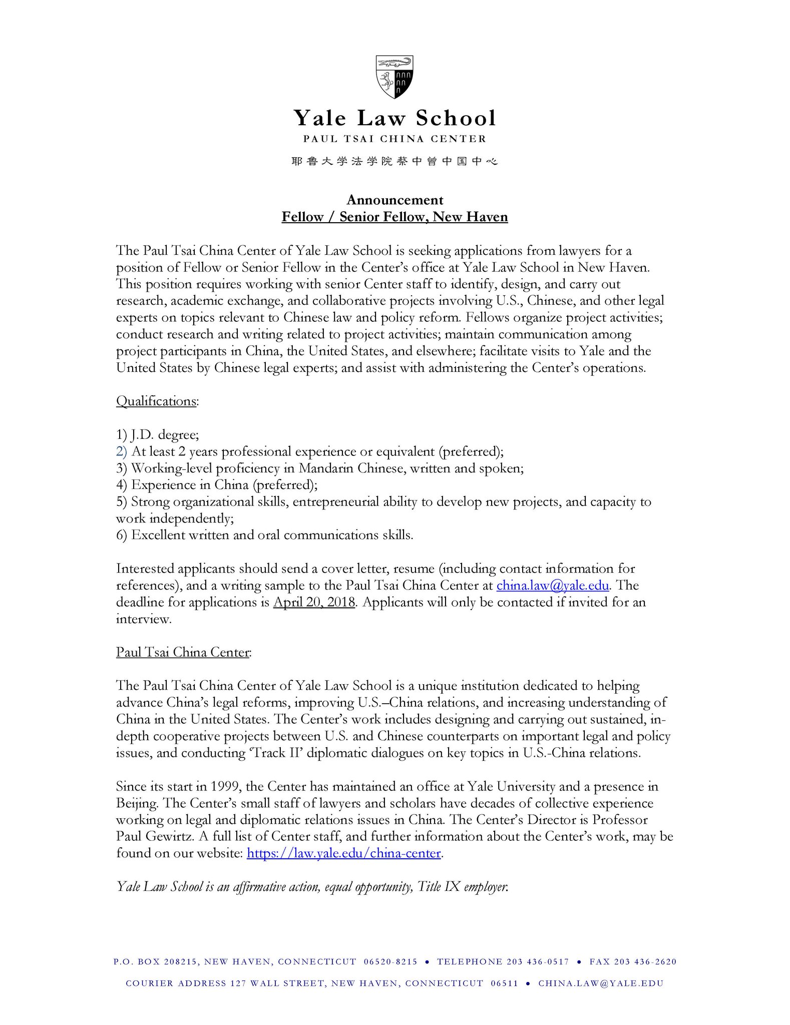 China Law Translate On Twitter The Yale Law Paul Tsai China Center Is Now Accepting Applications For A One Year Research Associate Position Based In Beijing An Amazing Opportunity For Recent College Graduates from pbs.twimg.com Your cover letter is as important as your resume because it is often read first and plays a vital role in your quest for an interview. Junior level lateral cover letters. Court of appeals for the third circuit, advocated a standard form cover letter. Insider advice on landing judicial clerkships, he supplies the following sample letter as a good example. Though, the editors said they may take cover letters into account when deciding between articles at a final vote in. There are a wide variety of career paths available within law & legal services —from work at law firms, to public interest and government agencies, to corporate law and academia, to private practice. Proofreading sets any writing apart from acceptable and makes it. Print a job description from stars so that you can tailor your cover letter to that position.